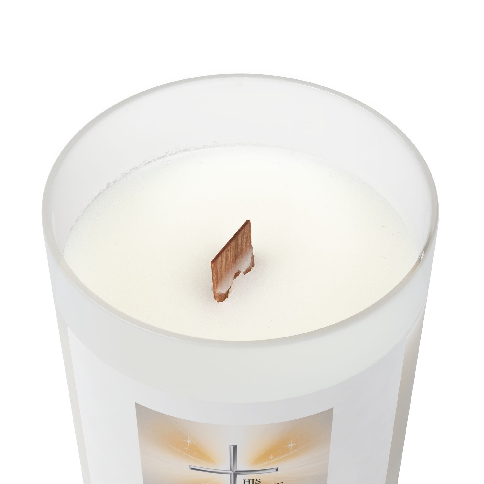 This frosted glass candle with the inspiring message 'His Grace Is Enough' creates a calming and uplifting atmosphere in any room. Perfect for those seeking a reminder of faith and hope in their daily lives. Ideal for religious holidays, gift-giving occasions, or personal relaxation.