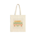 Introducing a stunning Cotton Canvas Tote Bag that embodies a perfect blend of style and sustainability. This tote radiates positivity with its cheerful message, 'Carry Kindness Everywhere,' making it not just a bag, but a statement piece. You’ll feel empowered and inspired every time you use it. Ideal for everyday errands, grocery shopping, or a day out in the park, this tote bag complements your eco-friendly lifestyle while adding a touch of charm. Perfect for those who appreciate thoughtful design and want to spread kindness in their daily routines. It's a great gift for friends and family during birthdays, holidays, or just to brighten someone’s day!